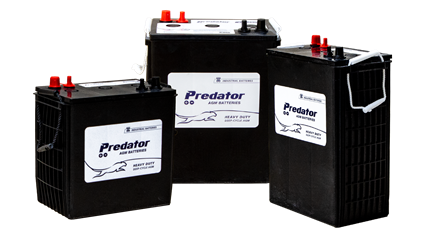 Predator Industrial batteries are available in different battery types to suit different applications and power requirements. They are available as Flooded or AGM batteries across various sizes.