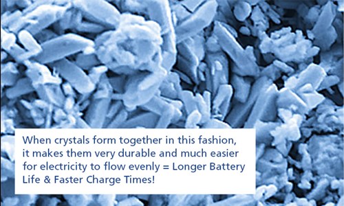 Improved Vibration and Shock Resistance. The more uniformly controlled TTBLS crystal size results in a stronger crystal network within the formed positive plate active material resulting in decreased shedding from vibration and shock.